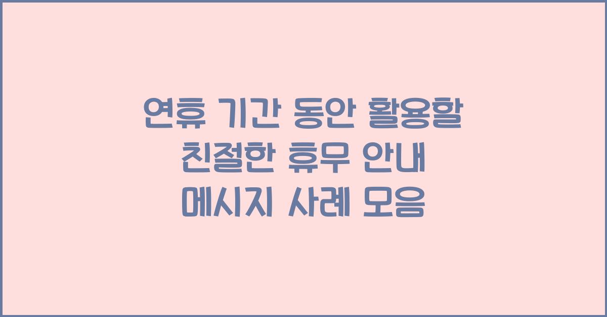 연휴 공지 작성의 중요성연휴가 다가오면 많은 고객들이 이를 미리 알고 준비해야 하죠. 특히 사업을 운영하는 분들에겐 중요한 시점입니다. 효율적인 고객 소통을 위한 연휴 공지 작성법을 잘 활용하면 고객의 신뢰도 향상에도 기여하고, 불필요한 혼란을 방지할 수 있습니다. 고객들은 언제 연휴가 시작되는지, 서비스나 제품의 제공 여부를 알고 싶어합니다. 따라서 명확한 정보 전달이 필수적입니다.효율적인 고객 소통을 위한 연휴 공지 작성법 더 알아보기고객이 원하는 정보를 불필요한 고민 없이 전달하는 것이 핵심입니다. 연휴 공지를 통해 고객들이 정확한 내용을 이해하고, 기업과의 관계를 더욱 강화할 수 있는 좋은 기회가 됩니다. 효율적인 고객 소통을 위한 연휴 공지 작성법을 통해 손실을 줄이고, 고객의 편의성을 높이는 ..